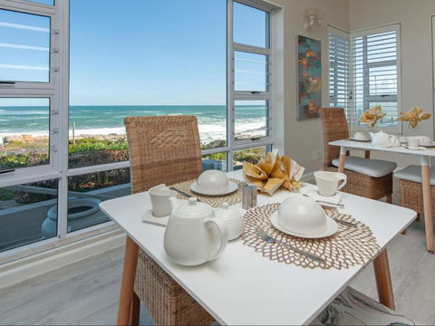 Mountain View with double bed plus an en-suite bathroom off a common large ocean view lounge. To accommodate a party of four, self-catering in luxury, book Mountain View Driftwood and Ocean Front Sea Breeze Suite.