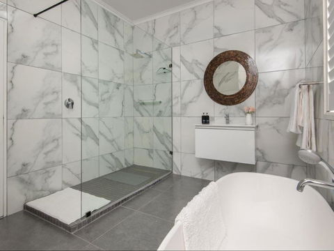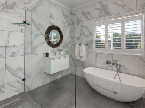 Ocean Front room with shared balcony and oversized bathroom with bathtub and shower enjoying mountain views and ocean views. To accommodate a party of four, book Ocean Front Blue Horizon and Ocean Front Rocky Shore Suite.